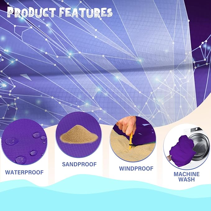 - 🌊BIG BEACH BLANKET:Durable and fast drying,can also be used as a canopy,sunshade,tent,toddler crawling mat,picnic mat,first aid mat,better professional fabric sewing without irritating the skin,providing you a good sense of use.
