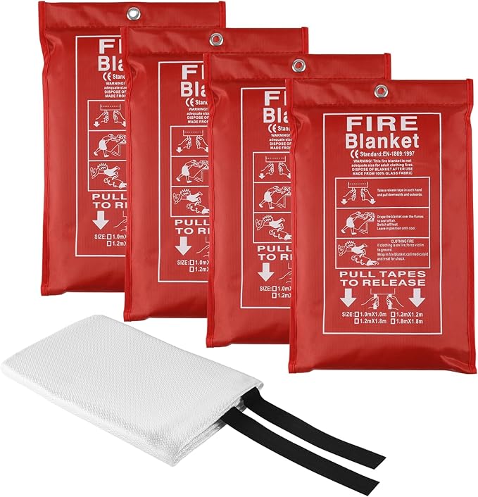 4 Packs Emergency Fire Blankets - 40“x 40” Camping Fire Suppression Blanket for Grill, Fire Pit - Portable Fire Blanket for Kitchen, Apartment, Offices, Warehouse