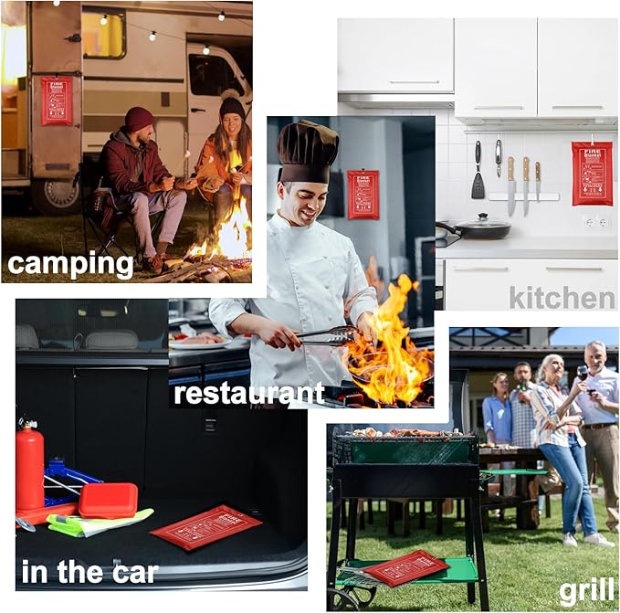 - EASY TO STORE: It has a hole slot so it can be easily hung on walls. Keep the Fire Blanket in the kitchen, fireplace, grill, car, office or take it camping. A must have in your kitchen, backyard and vehicle survival kit for protection.