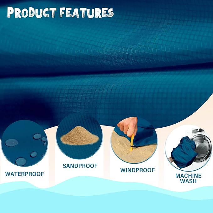 - 🌊BIG BEACH BLANKET:Durable and fast drying,can also be used as a canopy,sunshade,tent,toddler crawling mat,picnic mat,first aid mat,better professional fabric sewing without irritating the skin,providing you a good sense of use.