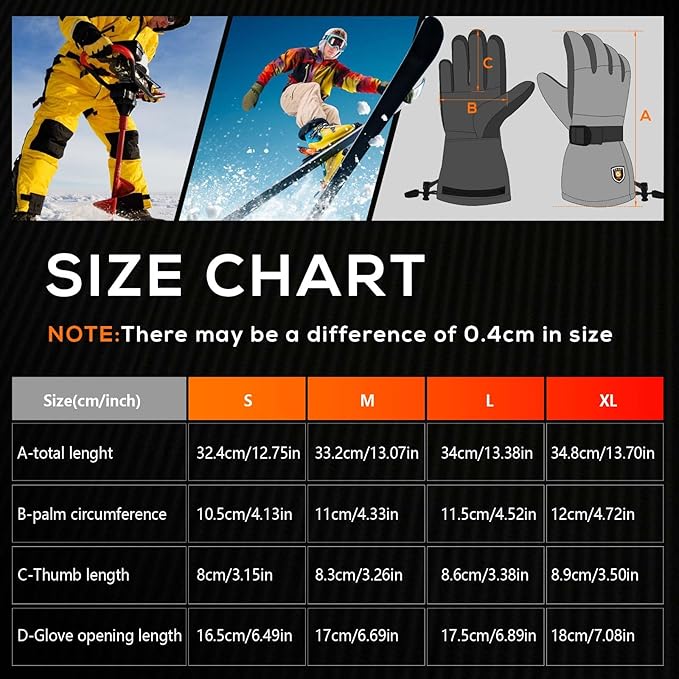 - Touchscreen & Waterproof: The sensitive touch screen function of your thumb and index finger allows you to use any electronic device in the cold winter without taking off your gloves.The palm part is made of superfine fiber material,which is more wear-resistant and non-slip.In addition,our warm electric heated winter gloves are breathable,waterproof and windproof,and keep your hands dry and comfortable during skiing, ice fishing,hiking,cycling and other sports