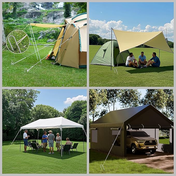 - Wide Applications--These heavy duty stakes for high wind work great for securing tents, trampolines, soccer goals, patio furniture in any weather and also perfect for pinning down weed fabric on tough soil or keeping outdoor decorations from blowing away