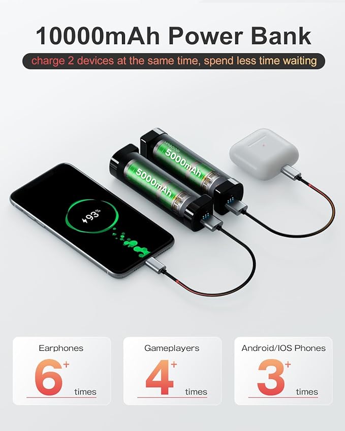 - 🔋【10000mAh Rechargeable Power Bank】Stay powered up on the go with our 10000mAh rechargeable power bank. Featuring two 5000mAh batteries, it fully charges in just 3 hours and provides 4-14 hours of warmth. As a power bank, it can fully charge your devices with the included USB-C cable. Note: The hand warmer cannot charge other devices while heating. No more worrying about your phone running out of battery when you’re out.
