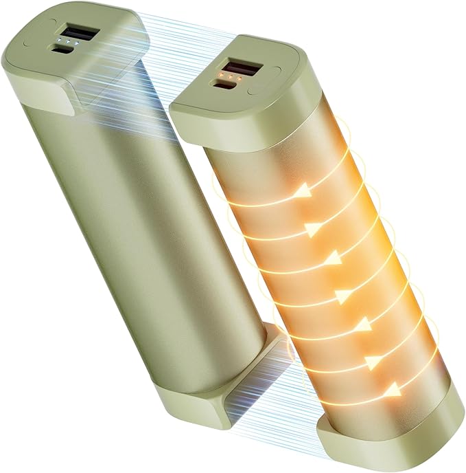 - 🔋【10000mAh Rechargeable Power Bank】Stay powered up on the go with our 10000mAh rechargeable power bank. Featuring two 5000mAh batteries, it fully charges in just 3 hours and provides 4-14 hours of warmth. As a power bank, it can fully charge your devices with the included USB-C cable. Note: The hand warmer cannot charge other devices while heating. No more worrying about your phone running out of battery when you’re out.