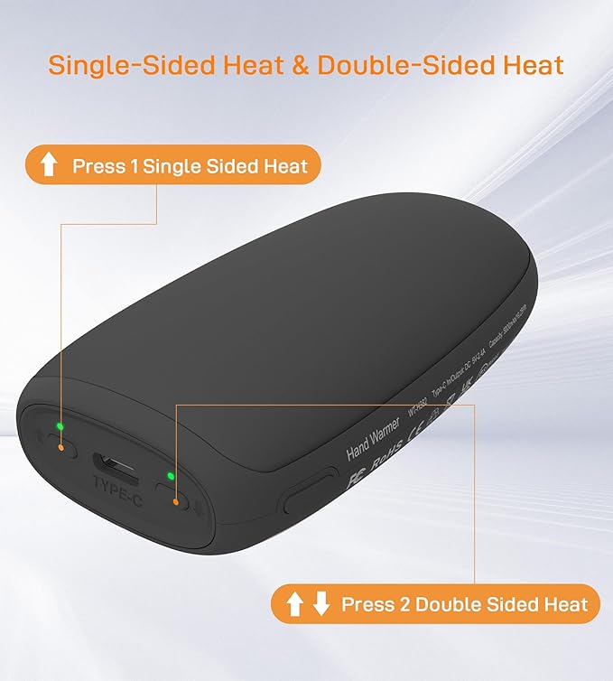 Hand Warmers Rechargeable, Electric Reusable 5000mAh Single Sided or Double Sided Heating Battery Pack for Football Winter Camping Fishing Skiing, Great Gift for Women and Men
