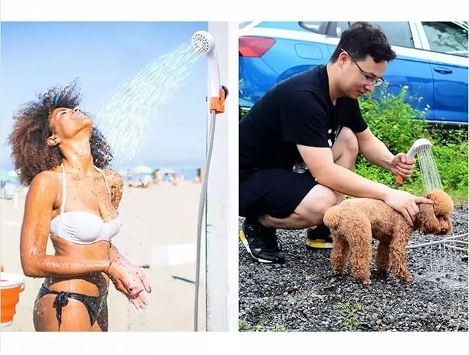 - Versatile——Camping shower can be used for indoor or outdoor showers, pet cleaning, car washing, garden watering, travel and camping.