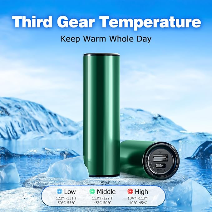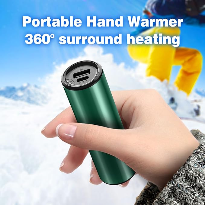 - 🔥【Hand Warmers and Power Bank】The hand warmers used imported ABS aluminum gold, take only 3 seconds to quickly heat up, 360° around double-sided heater, portable hand warmer put in your pocket/handbag. It also can be used as power bank with USB C port, supply 5V/2A output.