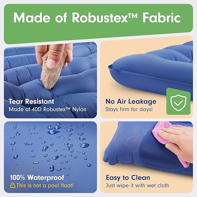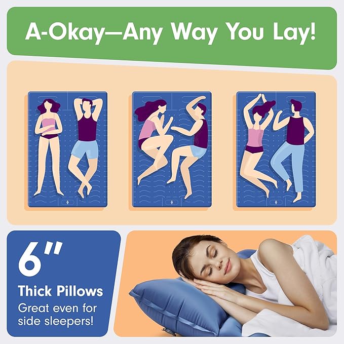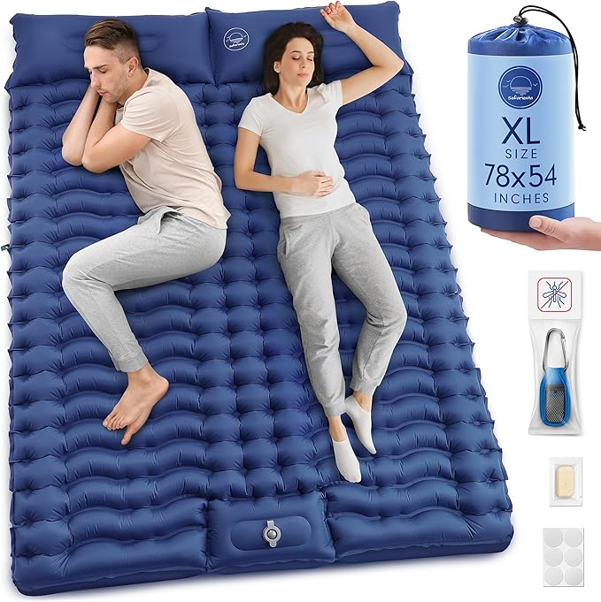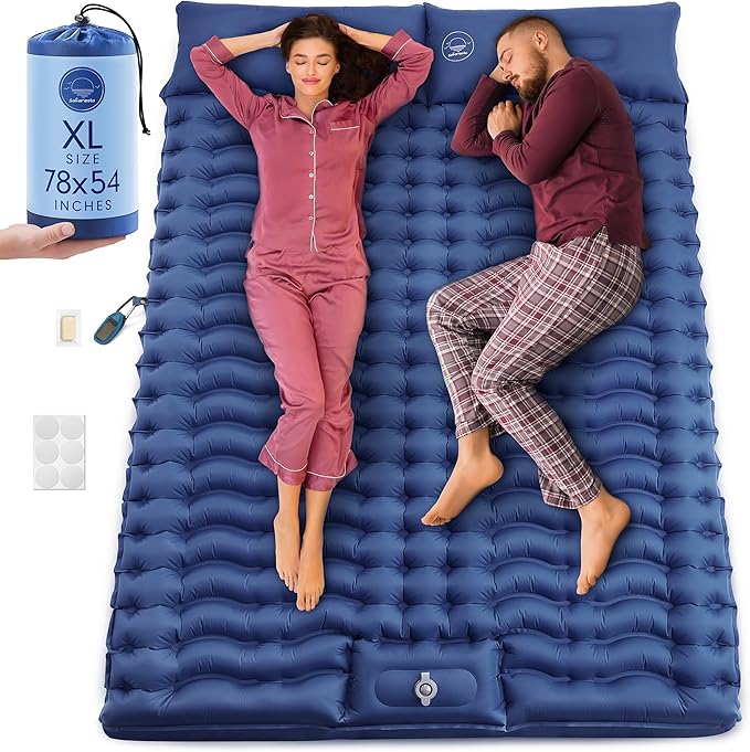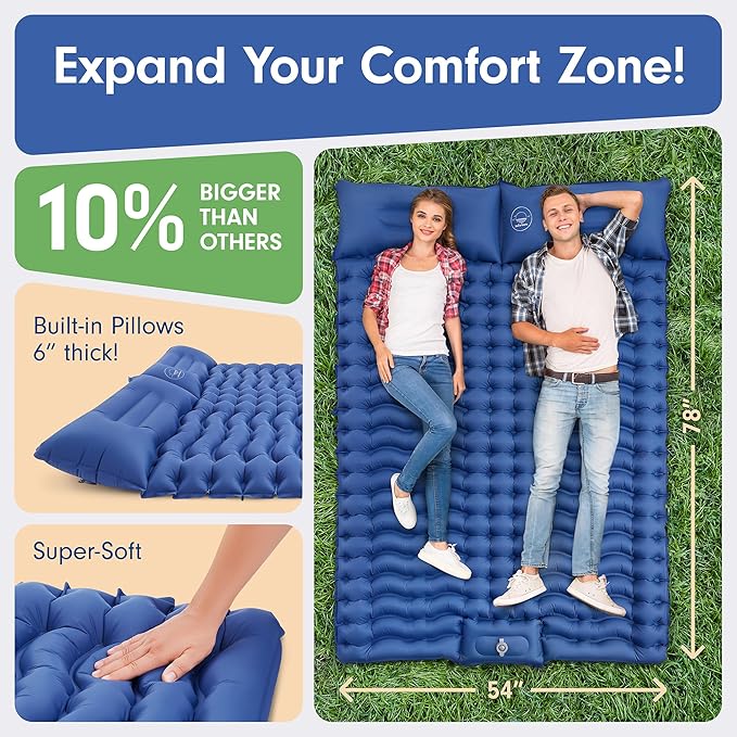 Double Sleeping Pad Extra Big 78”x54” - Camping Mattress 2 Person, Thick Blow Up Mattress w/ 6” Thick Sleeping Pads Camping Pillows - Camping Mat for up to 800 lb - Repair Patches Included