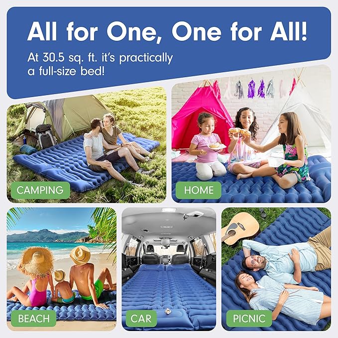 - ULTIMATE COMFORT! The camp sleeping pad promises blissful rest whether it’s in a tent, car, or on the beach, grass, ground, floor… It’s really a camping mattress 2 person heaven as it’s also quiet, pet-friendly, and smooth for bumpy surfaces