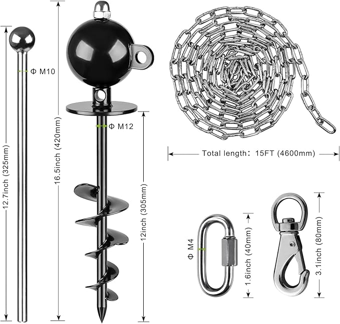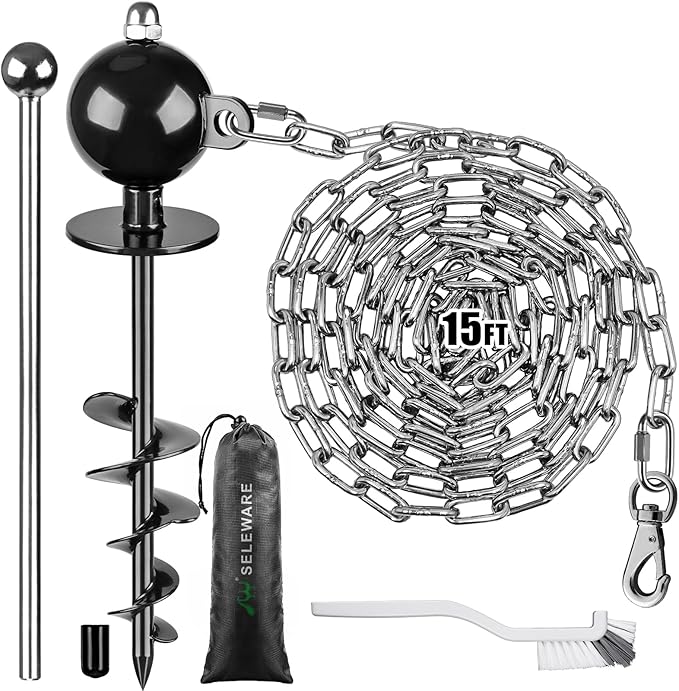 SELEWARE Dog Tie Out Stake Outdoor Anti-Rust Dog Anchor with Stainless Steel Dog Chains for Large Dogs up to 220 lbs, Free Rotation Dog Stake Dog Camping Gear 15 ft Long