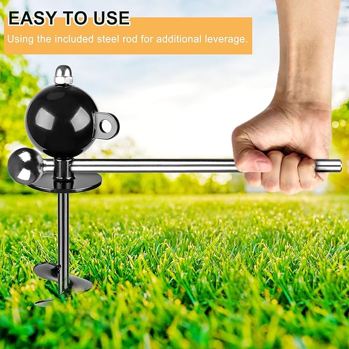 - Also could be a heavy duty ground anchor to hold your green house, trampoline, camping tents, RV awning side shade, swing sets and so on.