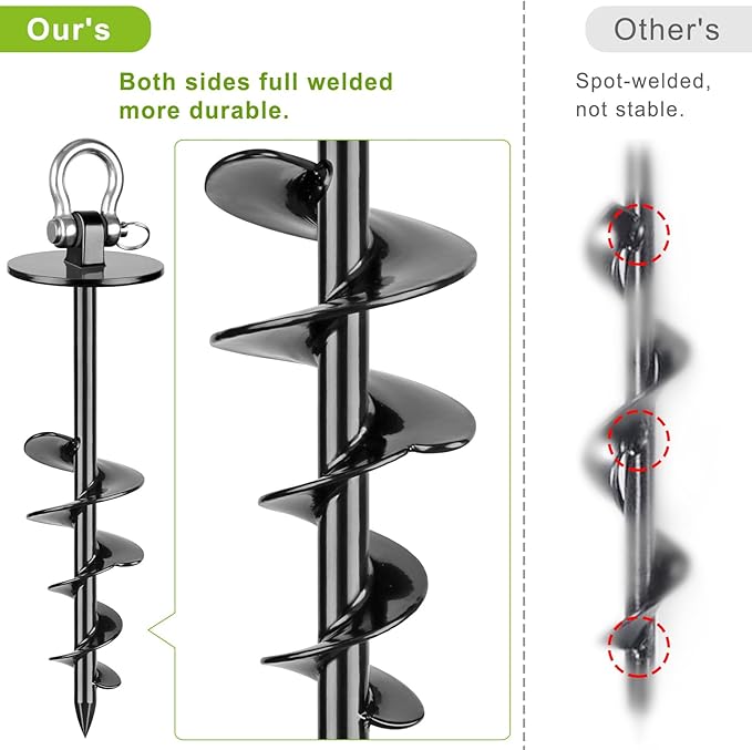- Also could be a heavy duty ground anchor to hold your green house, trampoline, camping tents, RV awning side shade, swing sets and so on