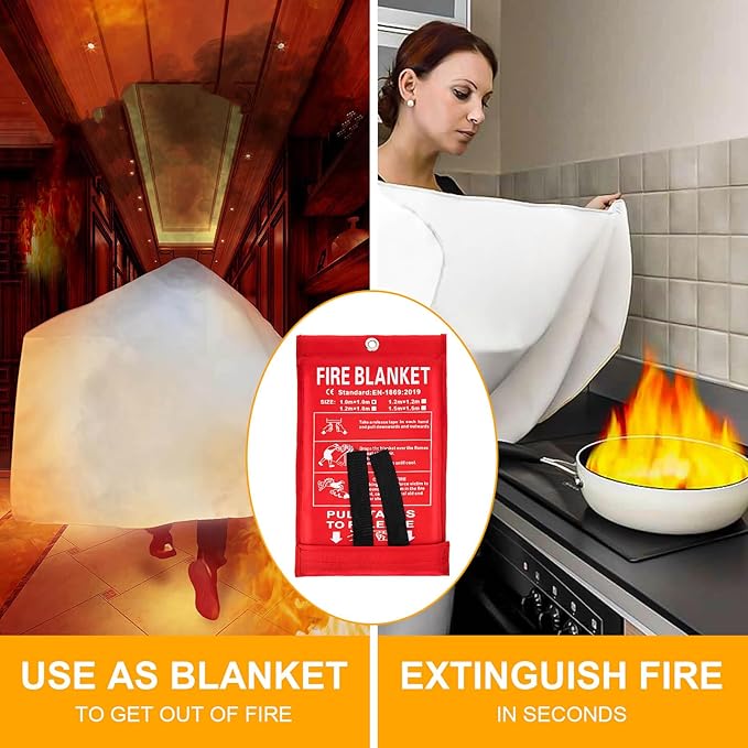 - 【Fireproof and Heat Resistant】The fire blanket is made of fiberglass, which is a flame-retardant material. The fire blanket can be used to put out small fires. It can also be used as a barrier to block the spread of fire or as a temporary heat shield.It is an essential emergency fire safety equipment that can help people extinguish the fire source promptly in case of a sudden fire.