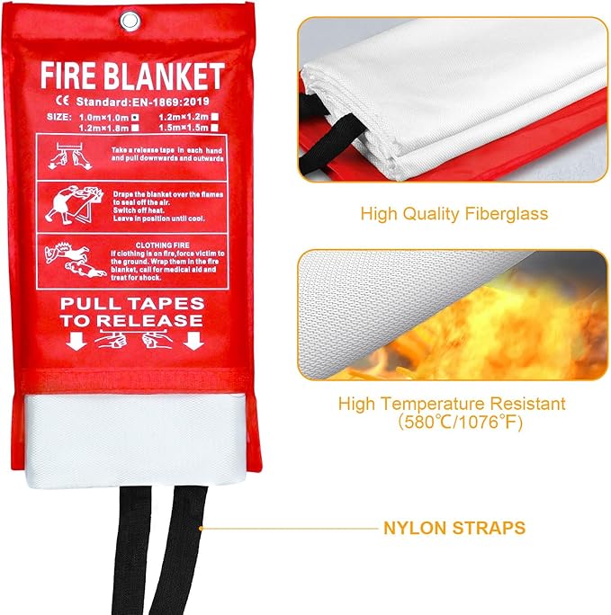 - 【Fireproof and Heat Resistant】The fire blanket is made of fiberglass, which is a flame-retardant material. The fire blanket can be used to put out small fires. It can also be used as a barrier to block the spread of fire or as a temporary heat shield.It is an essential emergency fire safety equipment that can help people extinguish the fire source promptly in case of a sudden fire.