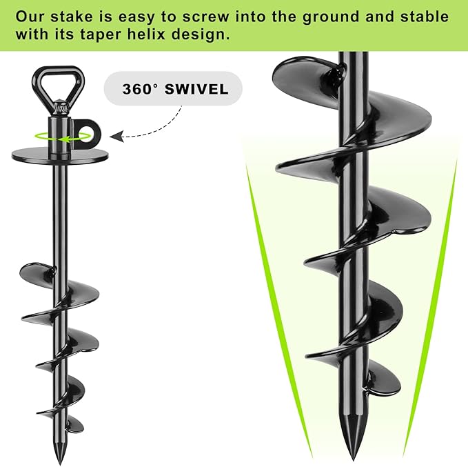 - Also could be a heavy duty ground anchor to hold your green house, trampoline, camping tents, RV awning side shade, swing sets and so on.