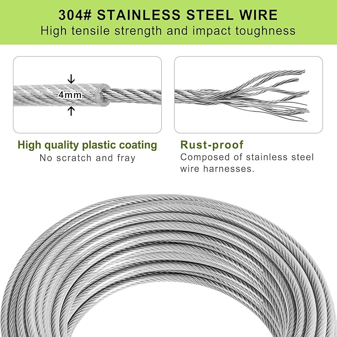 - The stainless steel dog tie out cable is made up of seven strands, with each strand containing sixteen individual wires. It's strong, durable, and built to last.