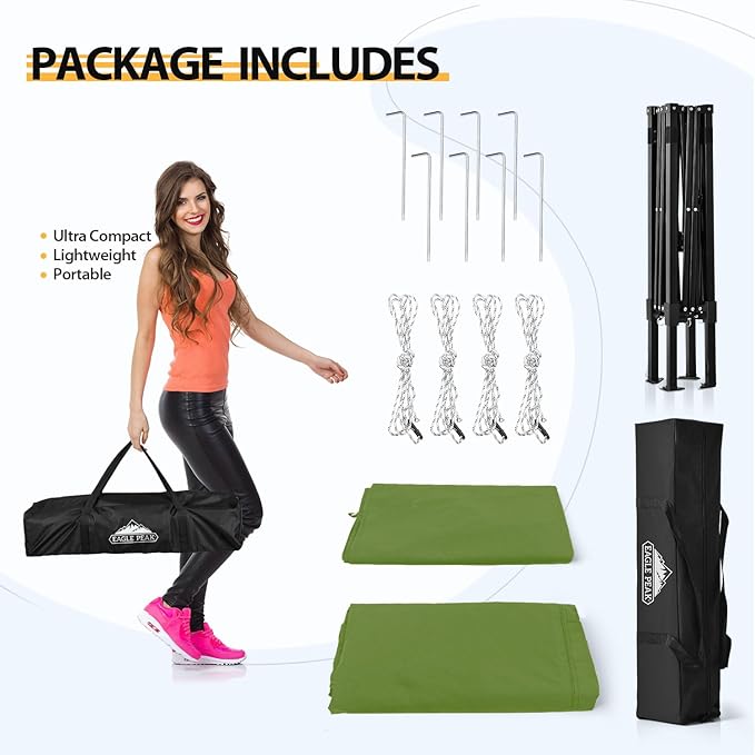 - EASY TO SETUP AND PUT AWAY: The EAGLE PEAK pop up system is more flexible and makes setup easy. The frame glides when opening and closing, enabling one person to easily open and close the canopy .