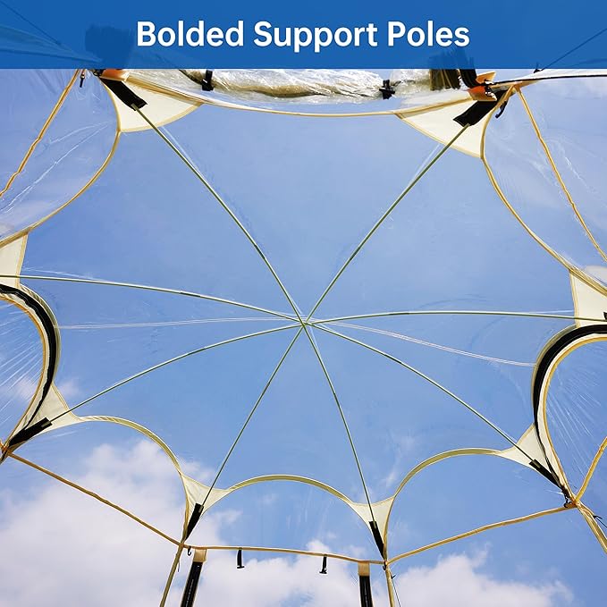 - 360° View Tent: Our bubble tent has enough space to place various furniture, making you feel at home. The transparent PVC windows provide a 360° view of the surrounding environment, allowing you to watch the stars at night with your family or friends and enjoy the beautiful scenery from all angles while having the shelter you need.