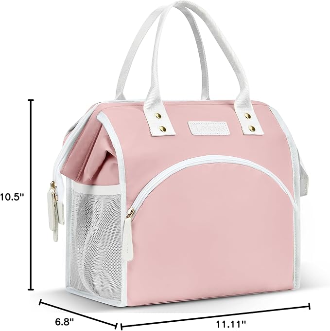 LOKASS Lunch Bag Women Insulated Lunch Box Wide-Open Lunch Tote Bag Large Waterproof Cooler Bag for Work Picnic Hiking Beach(Pink)