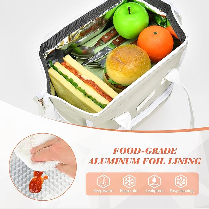 - 【Upgrade Aluminum Film】 Unlike others, our lunch bag women is made of aluminum film instead of EVA lining. The high-density three-layer fabric is lined with high-quality aluminum film material that can withstand high temperature and is not easy to wrinkle. High-quality aluminum film can keep food cool, warm and fresh for a long time. If you are looking for a lunch box that can withstand high temperature, it will impress you!