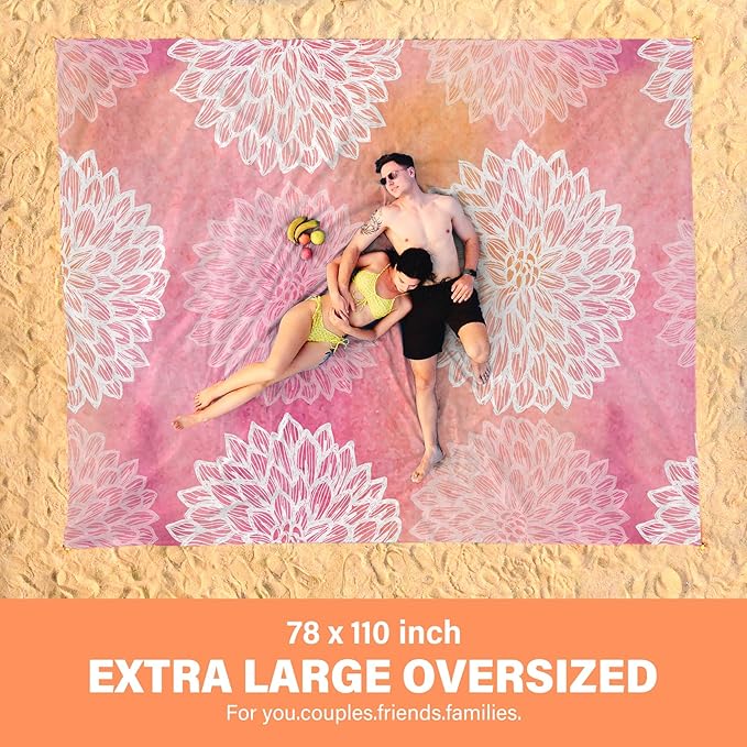 - Oversized Extra Large Beach Blanket :78" X 110"Size,2-8 Adults in total,Made by parachute fabric,More than 30% larger than other blankets,15 oz easy to carry!
