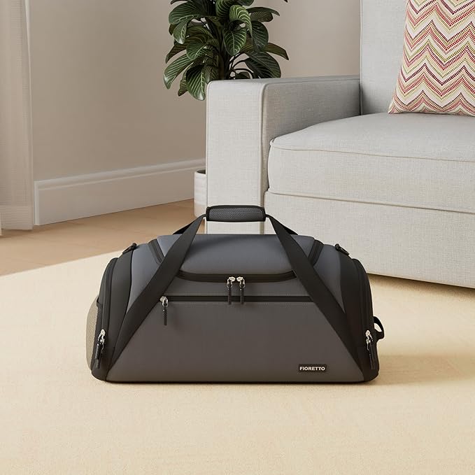 FIORETTO 43L Mens Sports Gym Bag with Wet Pocket & Shoe Compartment, Travel Duffle Bag Overnight Bag with Padded Shoulder Strap, Holdall for Swimming, Basketball, Football Grey