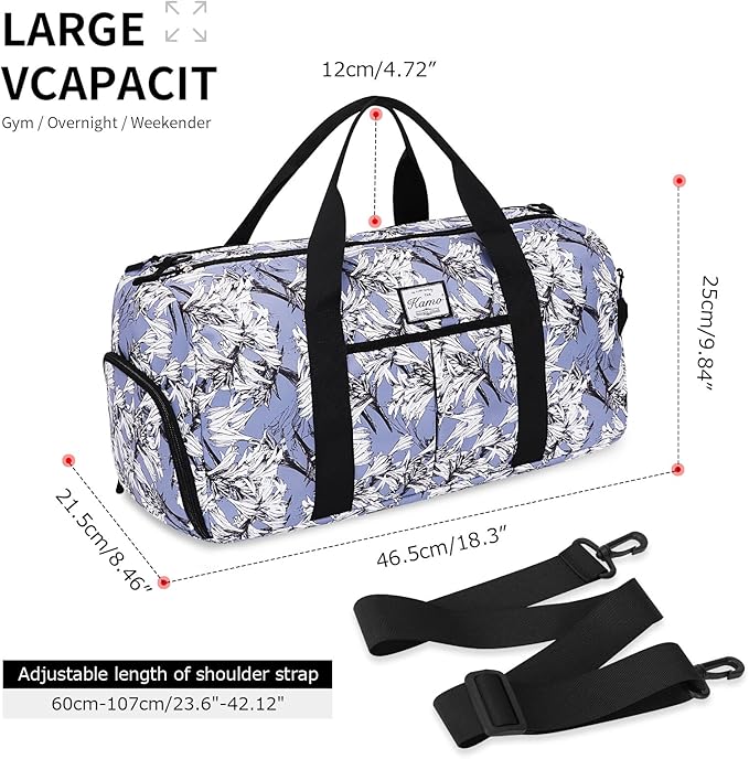 KAMO Travel Duffle Bag, Weekender Bags for Women with Shoe Compartment, Gym Bag for Women with Wet Pocket Workout Dance Tote Bag Personal Item Travel Bag with Trolley Sleeve