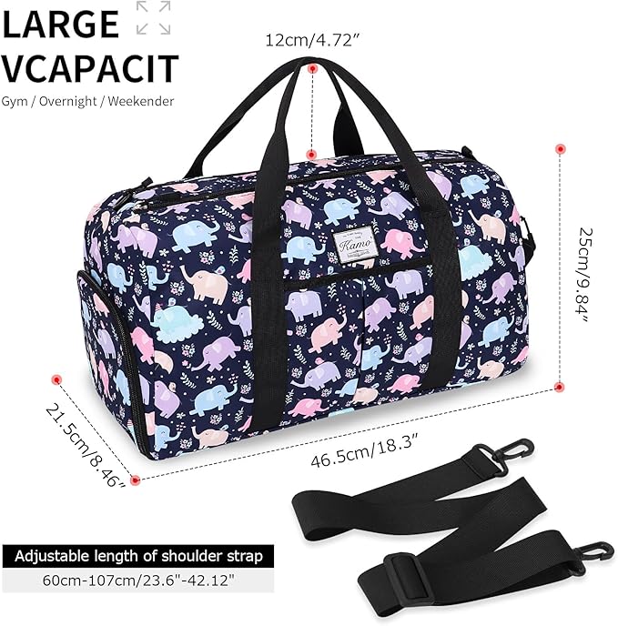 KAMO Travel Duffle Bag, Weekender Bags for Women with Shoe Compartment, Gym Bag for Women with Wet Pocket Workout Dance Tote Bag Personal Item Travel Bag with Trolley Sleeve