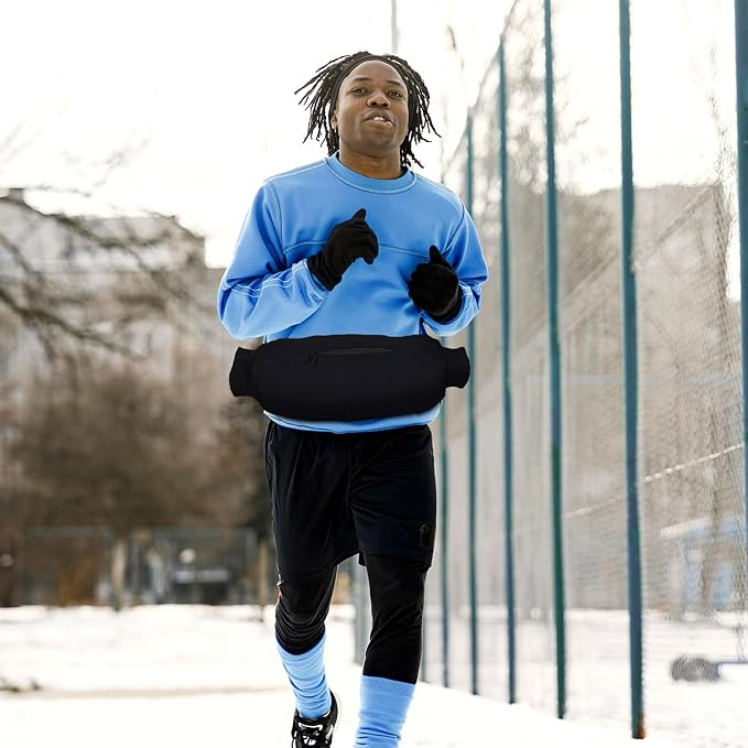 2 Pcs Football Hand Warmer with Zipped Pocket and Adjustable Waist Strap Lightweight Unisex Handwarmer Reusable Hand Muff Pouch for Cold Weather Baseball Hiking Camping, Black