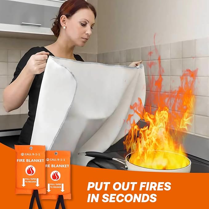 2024 Emergency Fire Blanket,Fire Extinguisher Blanket,Fire Suppression Blanket,Flame Retardant Blanket,Fire Safety Blanket for Home,Kitchen,School,Grill,Car,Office,Warehouse(40”x40”) (1 Pack)