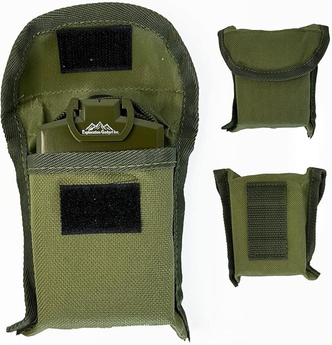 - Measurement conversion chart in the back of the compass. Compass is stored inside a military green canvas pouch with lanyard