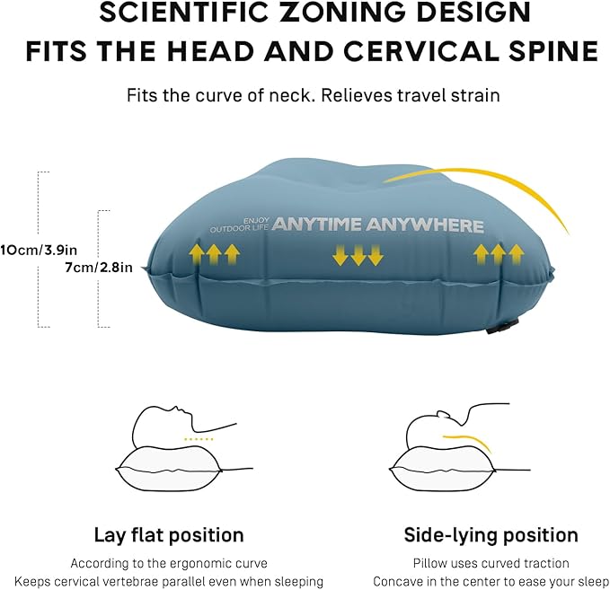 - ERGONOMIC DESIGN - The center features a recessed design that combines each air compartment to support the head and is soft and comfortable, easing you into sleep. The ends are curved to fit the shoulders and neck, and the U-shaped support arc fits the cervical vertebrae, scientifically designed for a variety of sleeping positions.