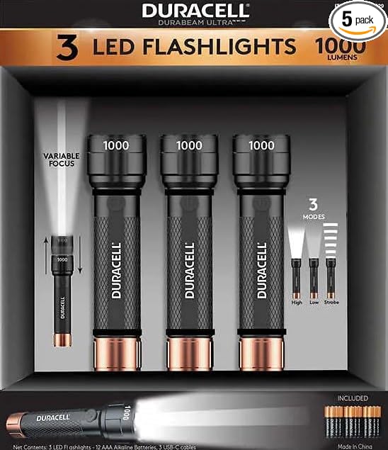 - Duracell 1000 Lumens AAA Compact Flashlight 3-pack