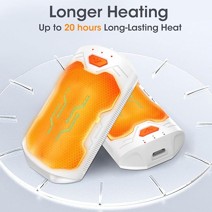 - 【20 Hours Long lasting】Built-in rechargeable 6000mAh(3000mAh*2) batteries, the energy-efficient battery capacity supports the hand warmer to work for 8-20 hours(depending on different heat level) It means you can go on long hikes, camping or fishing adventures with confidence. 3 levels indicator lights keep you informed of the remaining battery and heating status, Say goodbye to the hassle of frequent charging and ensure you stay warm all day long.
