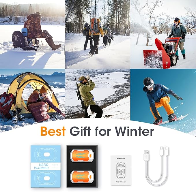 - 【Perfect Gift For Winter】Beautifully packaged with a cozy hand warmer is a perfect gift for camping, golfing, hiking, hunting,fishing,skiing, or winter outdoor activities, or who has raynaud's or always has cold hands.They will love the warmth provided by the latest Andwing rechargeable hand warmers It is a great birthday or festival gift for your family,friends,kids, or colleagues , suitable for men, women, elders, youth,girls, boys.