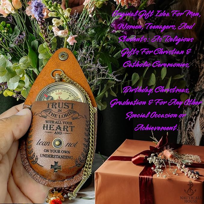 - Trust in the Lord – Proverbs 3:5-6 – Engraved with the powerful verse “Trust in the Lord with All Your Heart,” this compass encourages unwavering faith and spiritual direction every step of the way