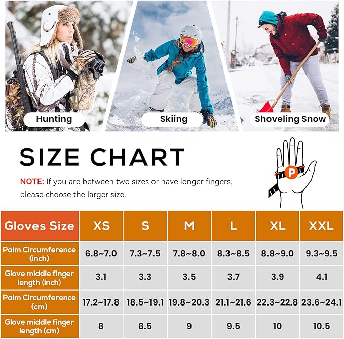 - Durable & Windproof & Waterproof: The palm part is made of superfine fiber, which is more wear-resistant, more non-slip and has a longer lifespan than other gloves made of PU material. The surface of the glove and the battery pocket are designed to be waterproof and windproof. Keep your hands dry and warm while skiing, riding motorcycles, working, hunting, hiking, biking and other sports
