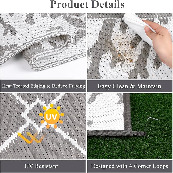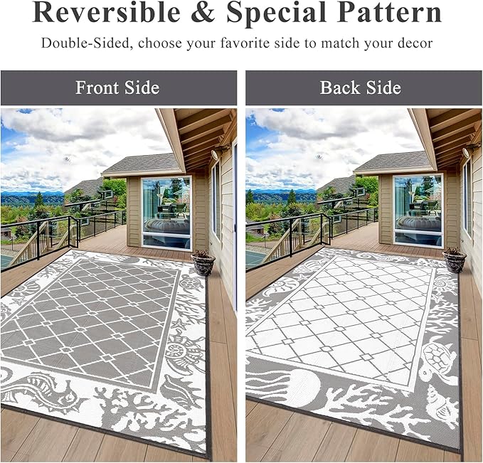 - Fully Reversible Rugs: The outdoor rug for patio is fully reversible, which is more practical than other ordinary rugs. And the outdoor carpet adopts trendy, cute and geometric patterns, which will help you add chic and comfort to your home, patio or RV