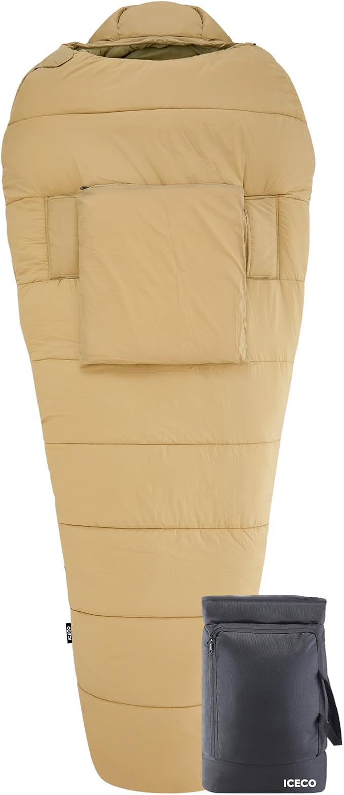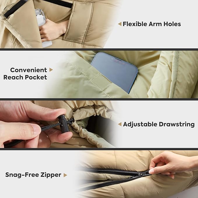 - Activity Armholes - The special design of the ICECO camping sleeping bag allows you to extend your hands from the cuffs, keeping in mind that your hands are not constrained and can move freely. You can reach out to read a book, operate your cell phone or eat without having to leave the warmth of your sleeping bag.