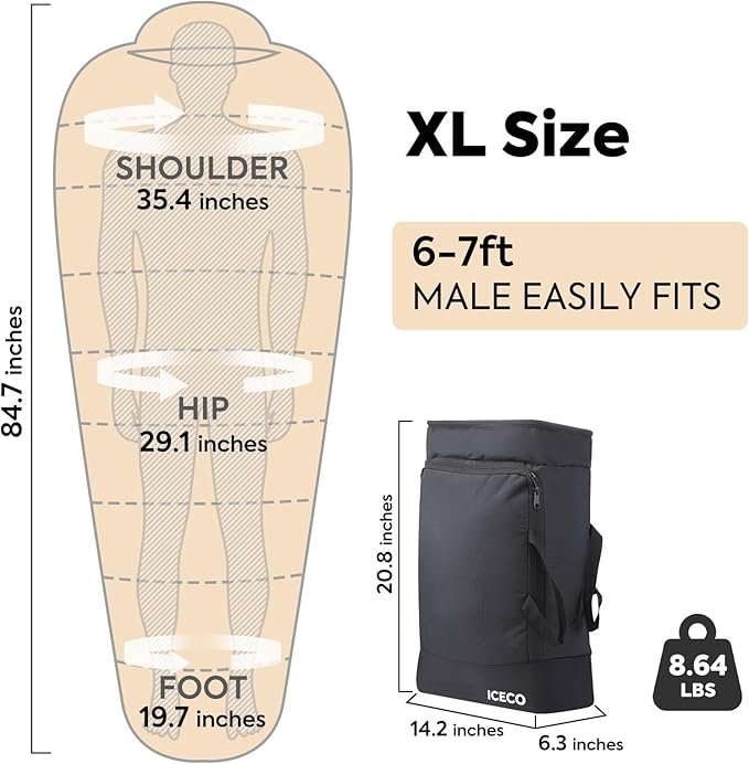 ICECO XL Sleeping Bags for Adults Cold Weather, 0 Degree Sleeping Bag, 3 Seasons Backpacking Sleeping Bag for Kids, Adults, Warm & Washable Winter Sleeping Bags for Camping, Traveling, Outdoor