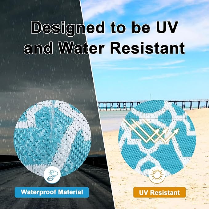- Lightweight & Portable Patio Rugs: The lightweight foldable construction enables ultra-portability, allowing our outdoor area rug to tag along on all your adventures, from campouts in the wilderness to lawn parties in the park, without being a burden.