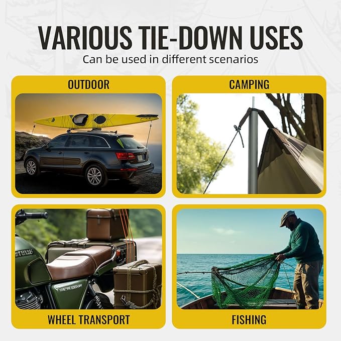 - 【Multi-purpose】The guide rope is ideal for different uses (zipper pullcord, carry bag pullcord, hammock rope, tent rope, clothesline, hanging pants,kayak and canoe,replacement cords for your gear etc), ratchet rope is perfect for outdoor camping, hiking, backpacking, tarps, and rain tarp