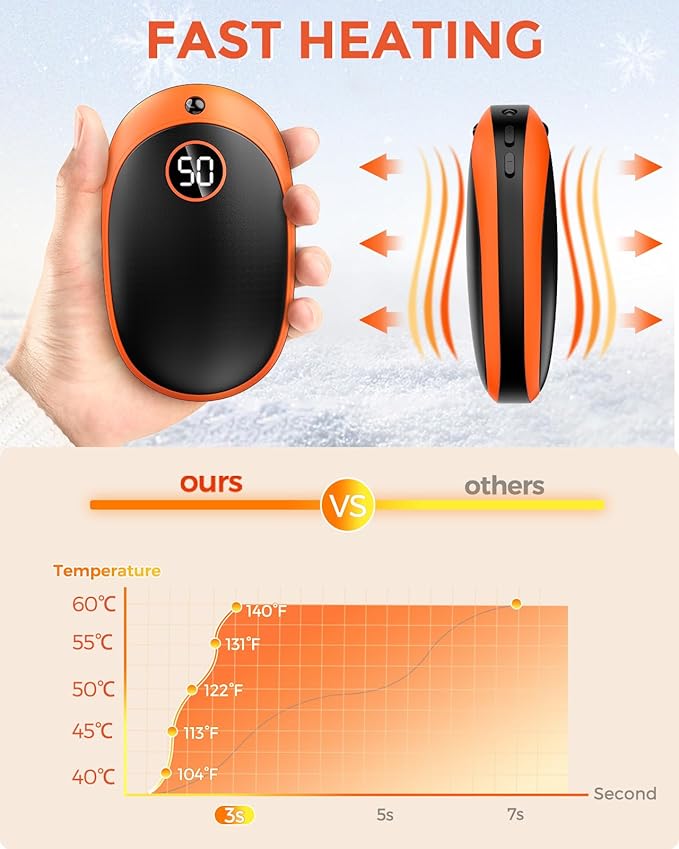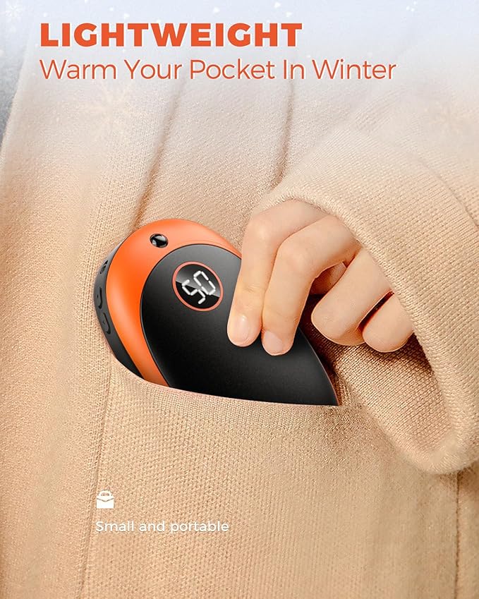 - 【Fast Heating & Portable】 Our rechargeable hand warmer quickly heats up, giving you warmth in seconds when those winter chills hit. The pocket-sized, portable design of the electric hand warmer ensures that you can carry portable and fits right in your pocket. Whether you're out hunting, camping, or skiing, just slip this adorable portable hand warmer into your pocket, and it'll keep you toasty for 4-10 hours.