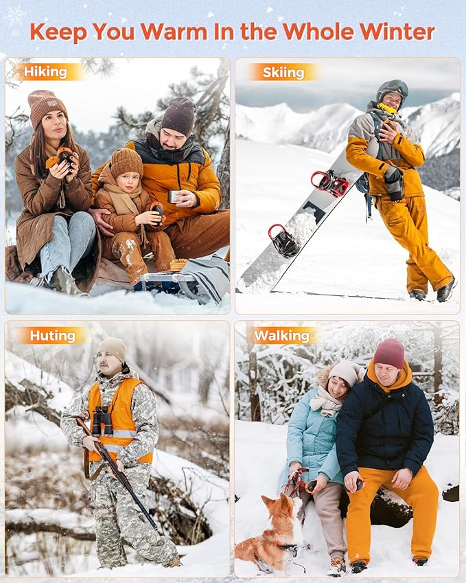 - 【Ideal Gift For Winter/Christmas】This electronic hand warmers rechargeable doesn't just keep you cozy in various situations. It becomes an essential sidekick in your daily life. It's also the ideal warm-hearted gift for your friends, family, boyfriend, and girlfriend. Whether they're grinding away at the office, embarking on a journey, hitting the slopes, or venturing into the wild for a hunt, they'll all relish this thoughtful gift that keeps their hands toasty and their hearts warm.