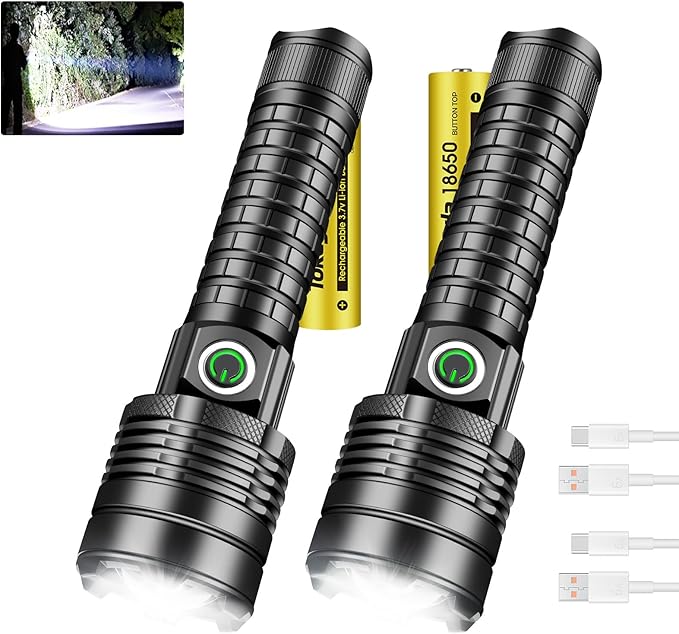 2 Pack Bright Flashlight Set, 2000LM Flashlights High Lumens Rechargeable, Zoomable 3 Modes USB C Flashlight Waterproof Led Flash Light Handheld Torch for Camping Emergency Hiking