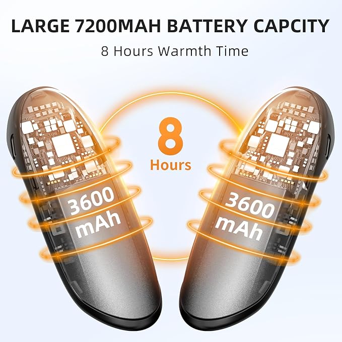 - [Long Lasting Instant Heating] -- Built-in 3600mAh battery every hand warmer, providing continuous use for 2-6 hours, Long Lasting battery ensures that keep your hand warm in cold day for outdoor activities
