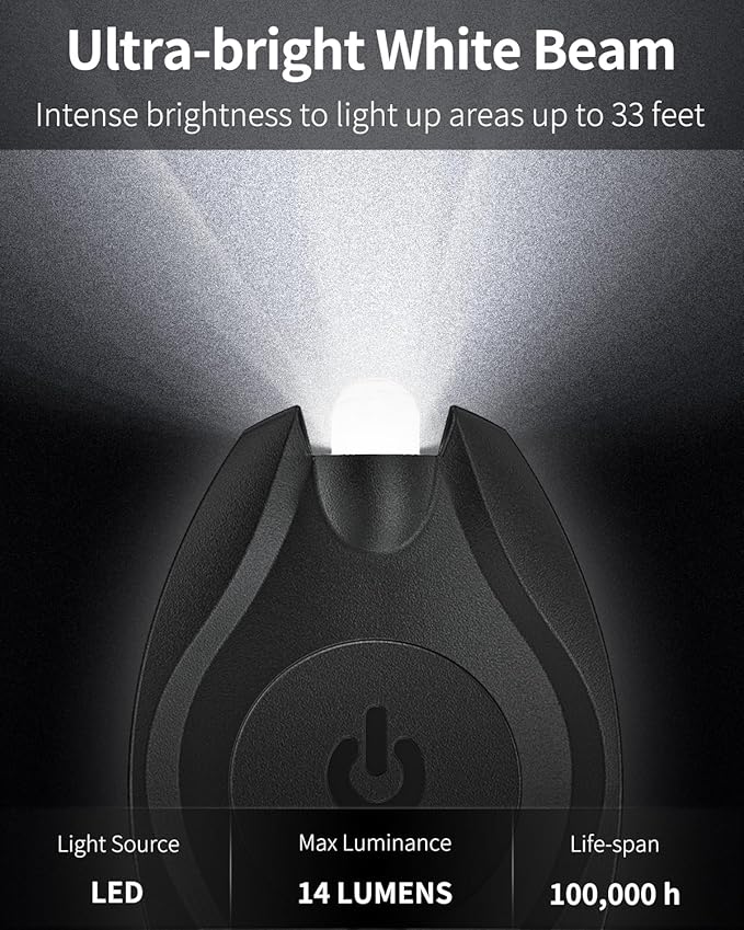 - 2 Lighting Modes: Continuous Lighting & Strobe – Press the button briefly on the mini light to start continuous lighting, press it again to activate strobe and press it a third time to turn off the light.