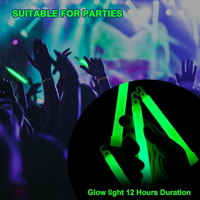 - Long Lasting Ligh and Easy to Use: Simply bend the glow stick and it will instantly glow for maximum brightness. The glow sticks will provide a green light and continue to glow for approximately 8 to 12 hours.