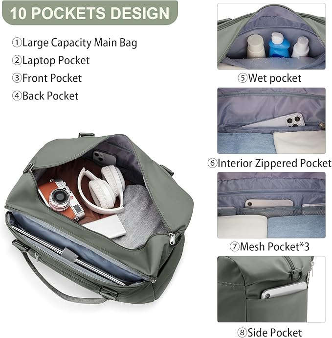 - Laptop Pocket: The weekender bags for women comes with an additional pocket specifically designed for laptops, with a maximum capacity of fitting a 14-inch laptop. This pocket provides comprehensive and effective protection for your laptop during travel.