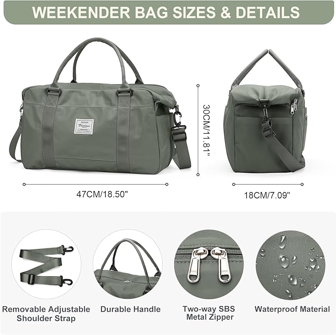 - Large Capacity and Multiple Pockets: This travel bag has 12 pockets,which ensure you have a place for everything.Dimensions: 18.5 x 11.81 x 7.09 inches; Capacity: 30 L; Suitable for a 3-5 day trip